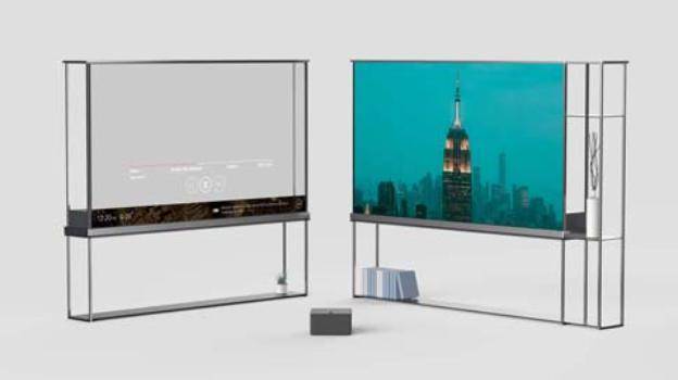 全球首款 77 英寸超高清透明 OLED 电视,在追求非标准内饰的同时体现品味和个性。它具有可定制的设计,其中金属框架材料的架子像家具一样组合在一起。