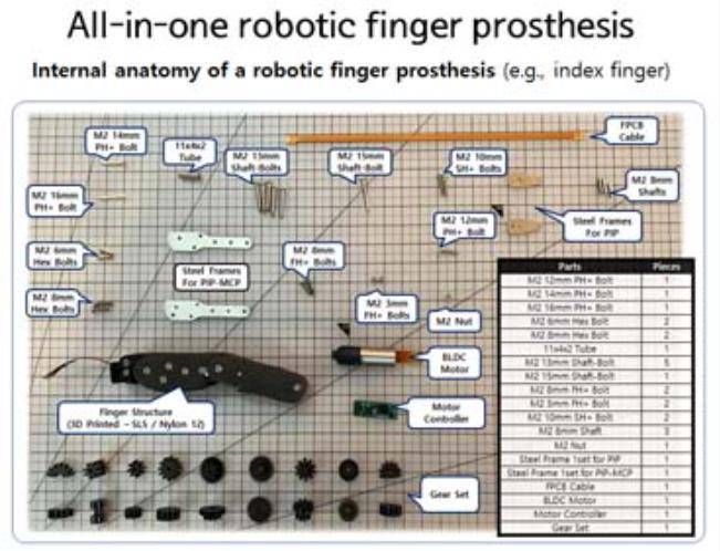 它包括一个坚固的无刷直流电机、一个传感器装置和一个与嵌入式系统集成的两级减速器。该解决方案经过系统设计,可适应部分手部损伤和各种上肢截肢。
