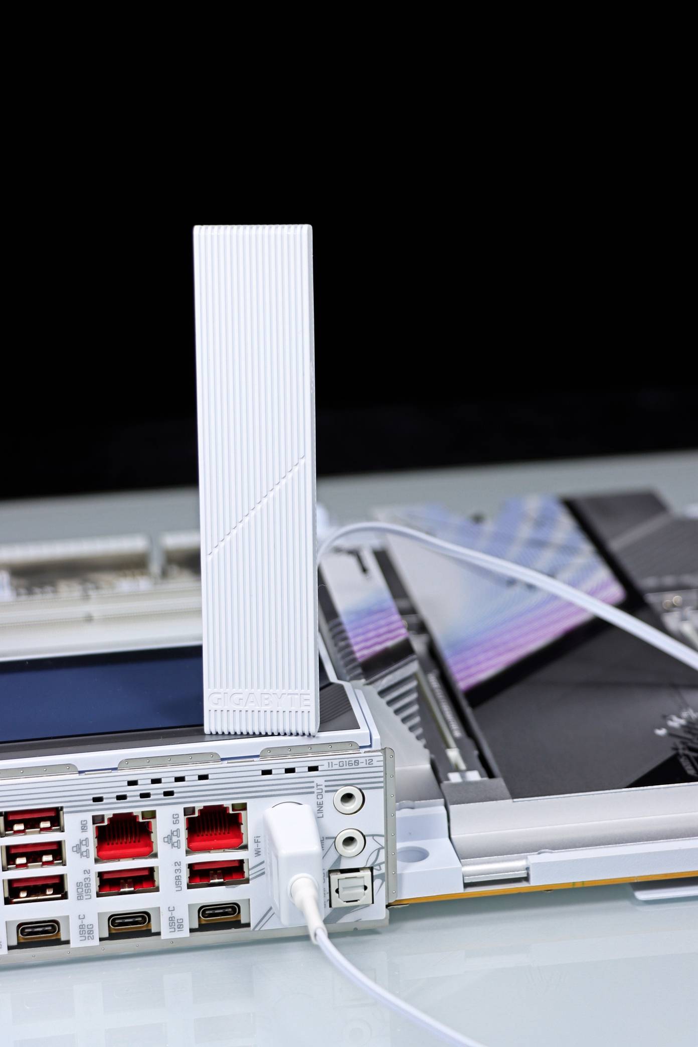 ▲ 主板的 WiFi 7 接口采用易拆装的天线接口设计,轻松就可以把磁吸式底座扩展天线安装。天线采用磁吸式底座,可以更好地吸合在机箱上。