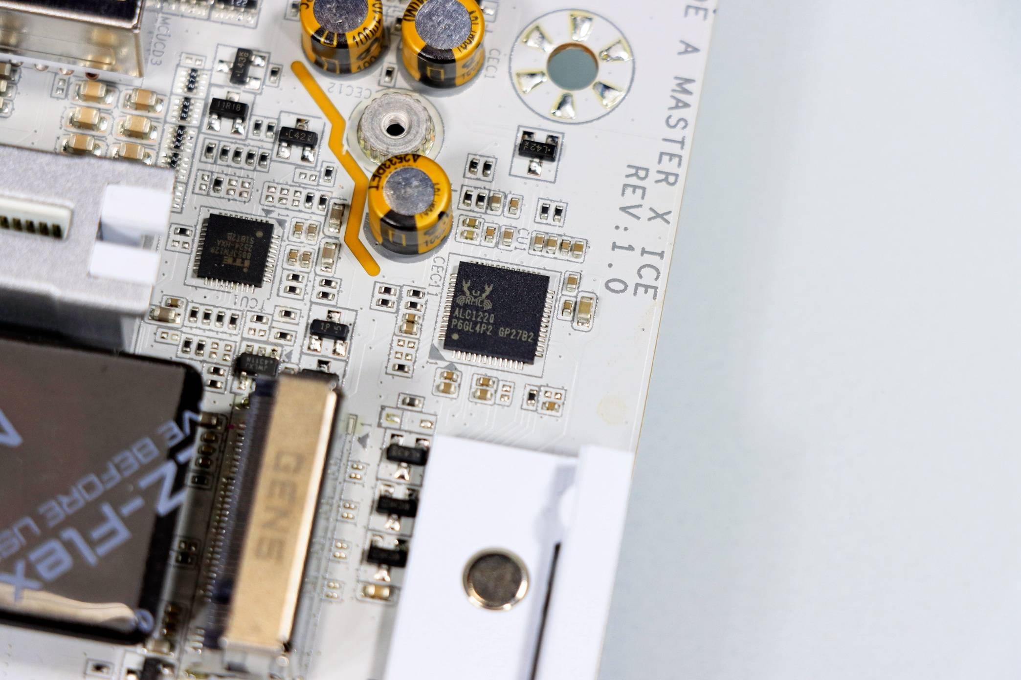 ▲ 主板搭载有小螃蟹 Realtek ALC1220 板载声卡,搭配上旁边的高品质滤波电容,可以输出 7.1 声道的高品质音频输出。