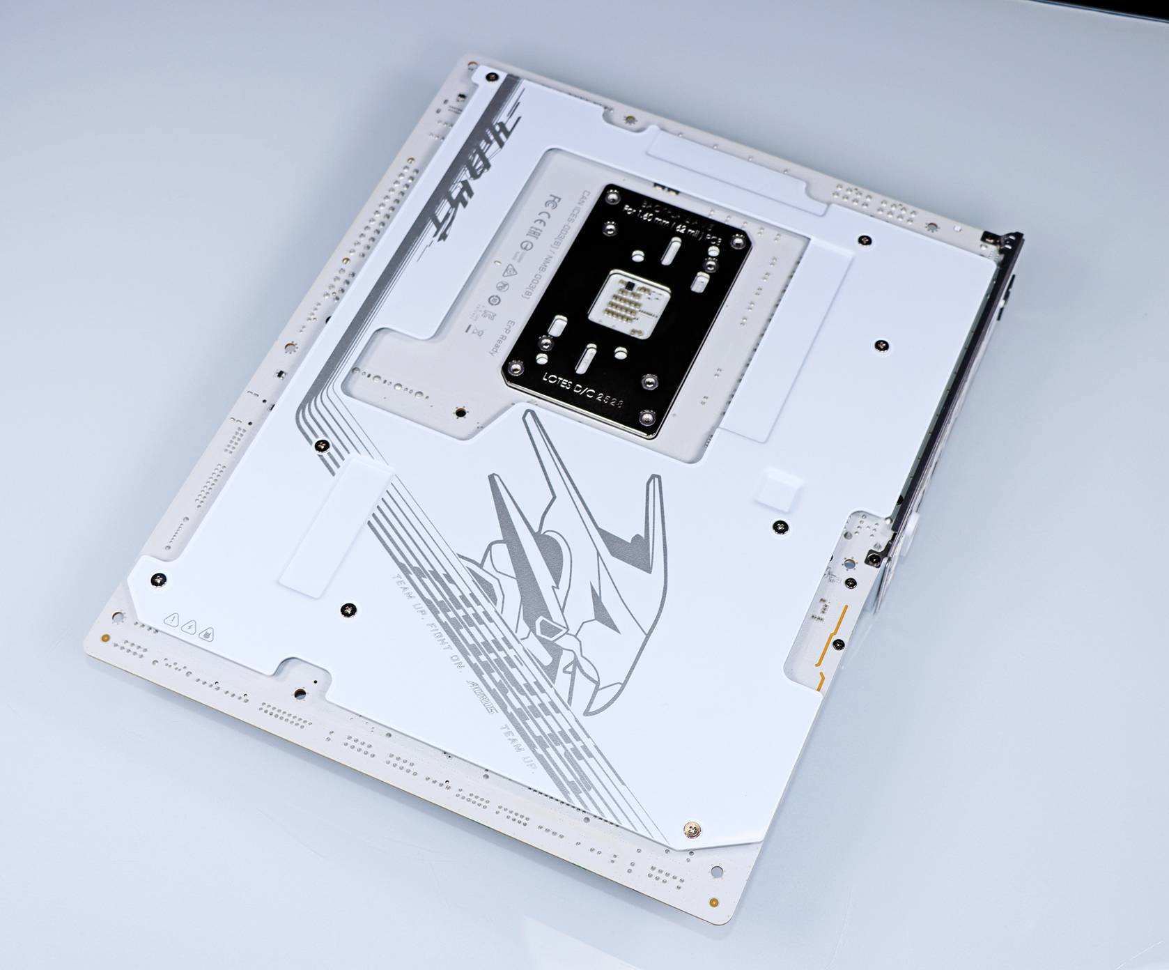 ▲ 主板背部采用一体式背板设计,可以辅助主板的散热,同时也可以增加主板的机械强度。
