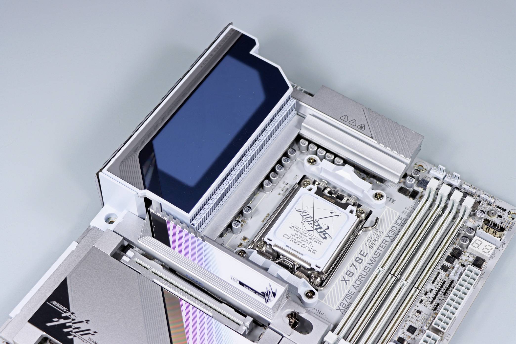 ▲ 技嘉 X870E 超级冰雕 AORUS MASTER X3D ICE 的做工极为出色,主板拿到手上就极为厚重。主板正反两面都有厚实且做工出色的钢铁装甲加以包裹,可以让主板拥有出色的机械性能。